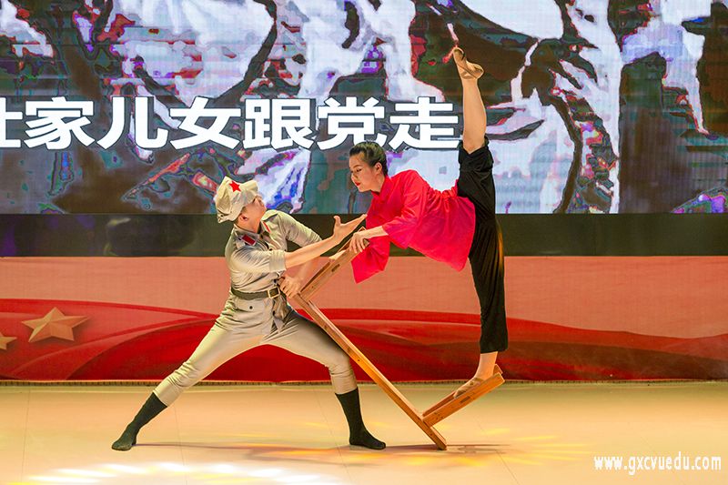 情景党课预演以多位主讲人演说、旁白、字幕等方式衔接,配合多媒体音画、原创红色歌曲演唱、歌舞短剧、播放纪录片等形式,串联起“忠诚在烽火硝烟中淬炼”“忠诚在担当作为中诠释”两个篇章。一首《红军阿哥我想对你说》让我们感受到龙州城保卫战的英勇和壮烈。从“天等精神”到如今的“新时代立屯精神”一首《幸福不能等靠天》深刻阐述信仰的力量,展现了人民好书记黄善军、“乡长爸爸”黎明华等党员干部践行誓言、忠诚为民的崇高使命和伟大情怀,彰显了全市广大党员对党忠诚、勇于担当、苦干实干的精神风貌。