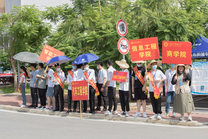学生志愿者们为新生开启了“一站式迎新”服务,从交验材料、缴费注册,到存放行李、核验新生身份等每一个流程和环节都有学生志愿者们的热情引导,悉心服务。后勤部在各宿舍、路口等地方设工作点,保卫科一手抓疫情防控、一手抓校园安保,同时进行车流引导、协调校园交通,为迎新工作的有序进行保驾护航。