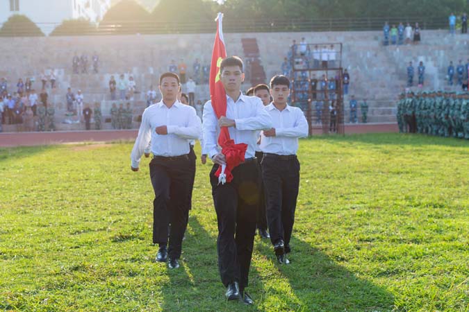 大会开始前,全体师生举行了隆重庄严的升旗仪式,2021级新生军训动员大会拉开序幕。