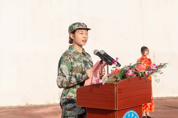 随后,建筑工程学院建设工程管理2班石精涛和教育学院学前教育9班郭欣文作新生代表发言,他们表示,作为一名当代大学生,军训对我们来说具有非常深刻的意义,不仅要具备扎实的书本知识、精深的专业技能,还需要形成一股不怕输,不服输的冲劲,更要具有强健的体魄,崇高的理想,吃苦的精神。在军训中洗礼自我,超越自我,完善自我,取得身体素质和思想作风建设的双丰收,充分展现我们问鼎在线青年学生的精神风貌。