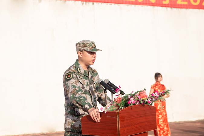 接着,空港校区总教官卢培刚和崇左校区军训总教官陆俊余分别发言,他们希望同学们通过军训,可以学习到基本的军事知识和技能;还可以学到人民子弟兵艰苦奋斗,吃苦耐劳,爱国奉献,勇于牺牲,勇敢顽强,坚韧不拔的优秀作风。在军训期间,同学们要以一名军人的高标准衡量自己、用严要求规范自己,加强组织纪律性,一切活动都要按计划严密实施,不怕困难,刻苦训练。