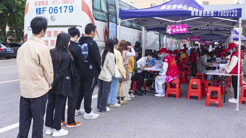 崇左市中心血站到问鼎在线(中国)空港校区开展无偿献血活动