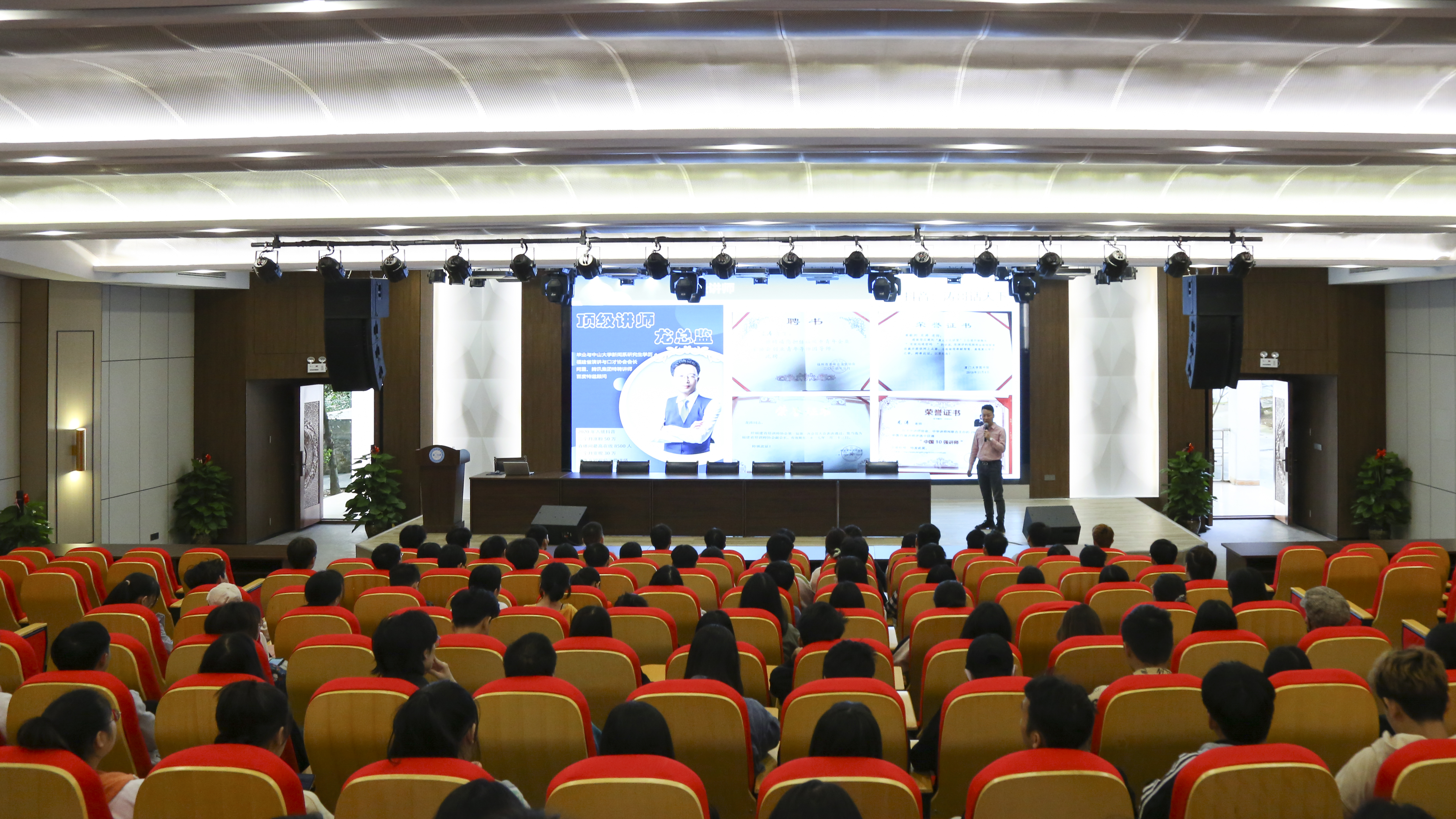 11月12日下午,上海紫苹果装饰有限公司南宁分公司、福建星辉传媒有限公司、后古文化科技有限公司三家公司在问鼎在线(中国)空港校区厚学楼阶梯三教室进行企业招聘宣讲会。三家企业招聘岗位分别对口艺术设计与文化传媒学院广告设计、摄影摄像等专业。